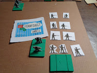 Anna's regular infantry is entrenched (new rules test) on the lower hills supported by the artillery on the summit under the command of General Rudolf, herself. The Sergey forces under the command of General Karjakin will enter the battle with the simple orders "Let the dice decide" (1 artillery unit from each direction and other units will dice for entry points).